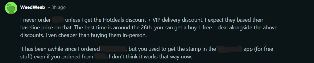 Tidak kurang juga yang berkongsi strategi berjimat dengan hanya membuat pesanan ketika promosi seperti diskaun “Hot Deals” atau baucar penghantaran percuma.