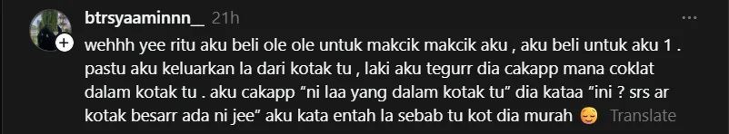 Menurut pembeli, pengalaman “unboxing” hanya berlaku selepas tiba di rumah, menjadikan situasi itu lebih memalukan, lebih-lebih lagi jika coklat tersebut sudah dirancang untuk diberi kepada ahli keluarga atau kenalan.
