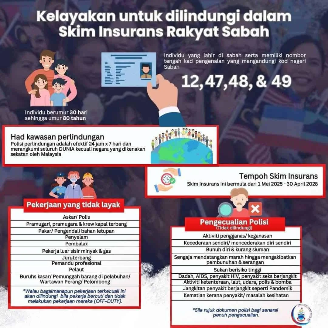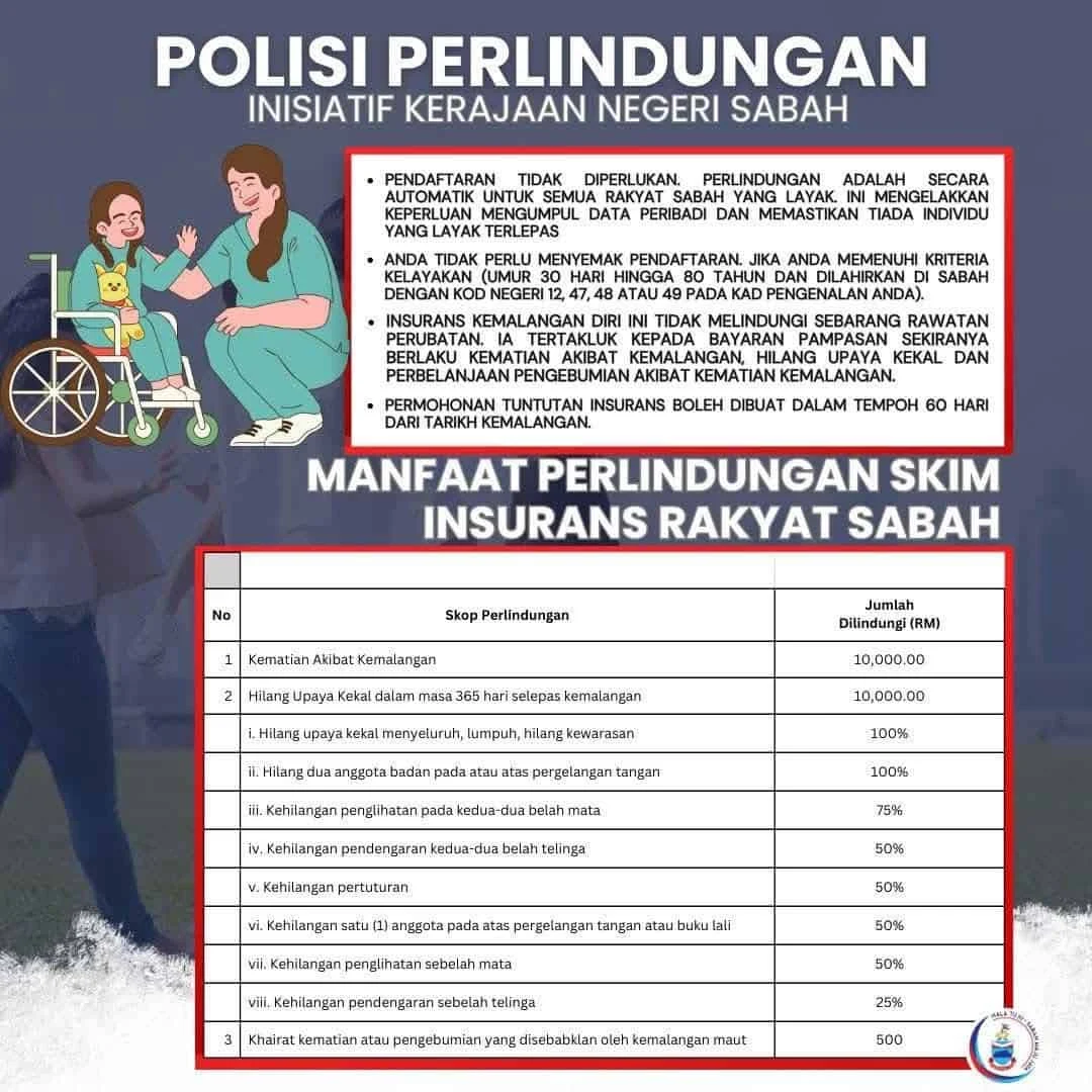 Kedua, kelayakan adalah automatik. Anda layak jika berumur 30 hari hingga 80 tahun, lahir di Sabah, dan kad pengenalan mengandungi kod negeri 12, 47, 48, atau 49. Tiada pendaftaran diperlukan. Bayi baru lahir juga dilindungi sebaik sahaja umur 30 hari. Malah, walaupun anda kini menetap di luar Sabah, selagi lahir di Sabah, anda tetap dilindungi.
