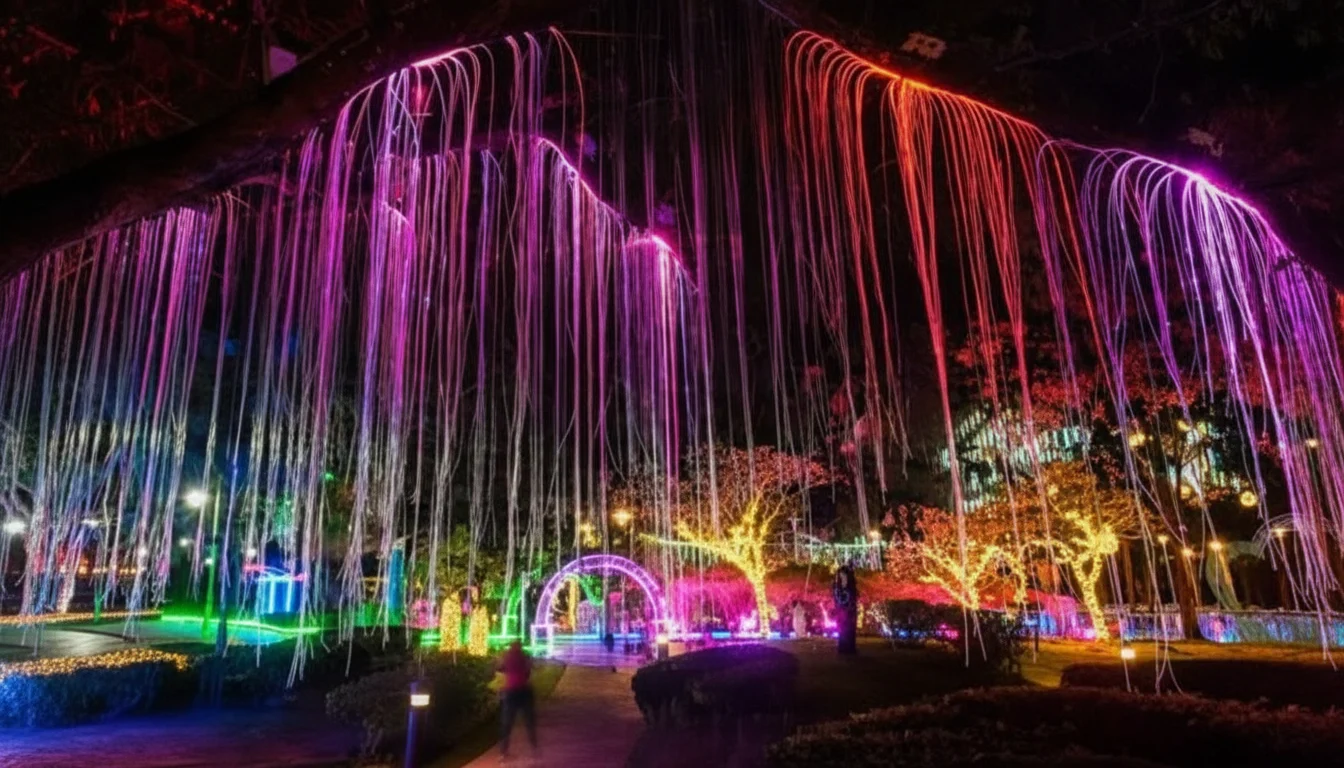 Pencahayaan yang digunakan tidak terlalu terang, jadi mata tetap selesa dan vibe romantik masih terjaga. Sangat sesuai untuk sesi fotografi malam atau sekadar berjalan santai sambil menikmati kombinasi warna yang menenangkan.
