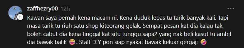 “Member saya pernah kena macam ni, satu kedai gelak masa nak cabut kasut.”