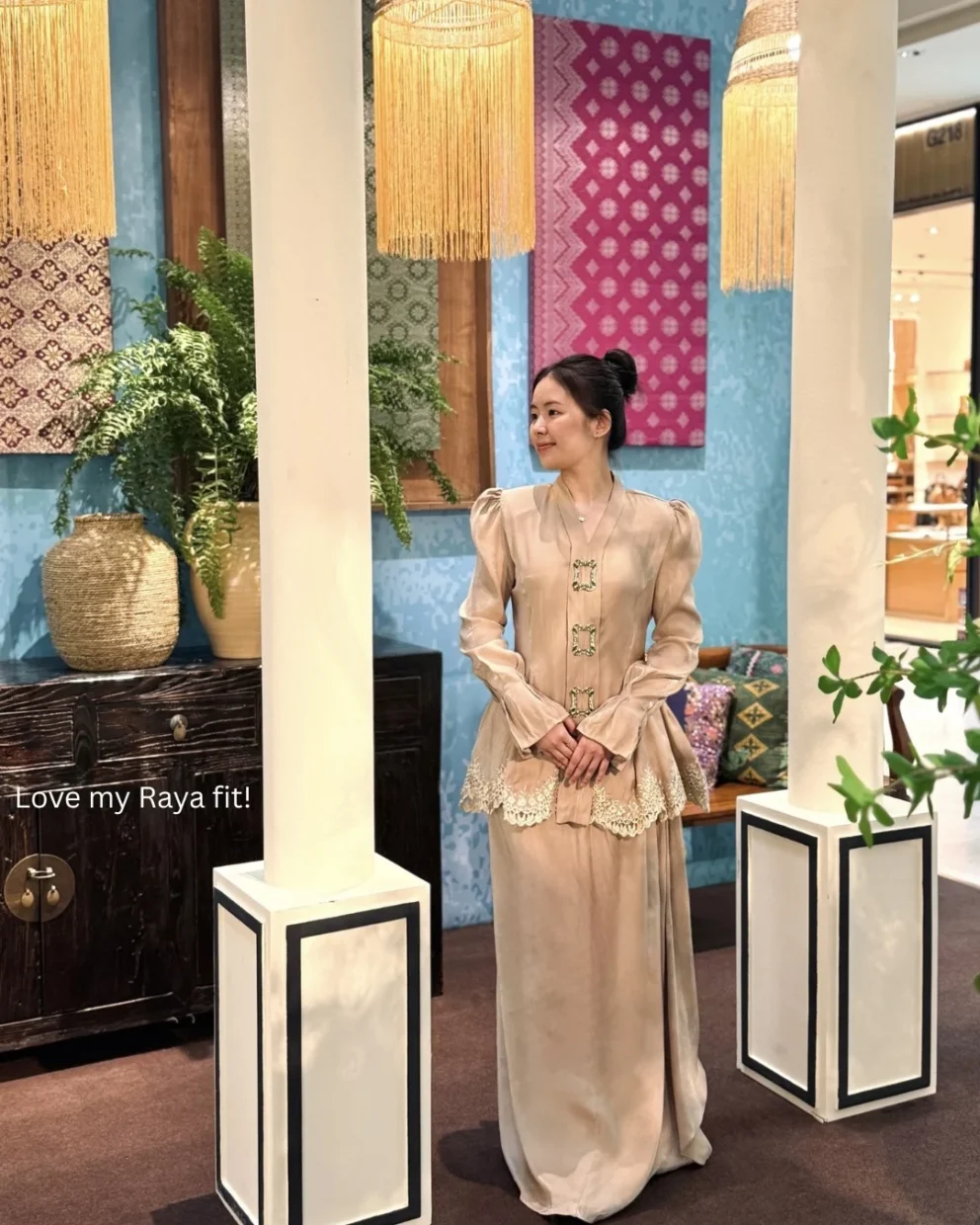 Tahun ini, The Gardens Mall tampil dengan konsep “Raya Mansion” yang diinspirasikan daripada seni bina warisan Malaysia. Dari jauh lagi sudah nampak gerbang tinggi yang cukup elegan. Bila MURAI berjalan masuk, ada sudut bacaan yang tenang, laluan archway klasik dan dekorasi yang cukup cantik untuk bergambar.