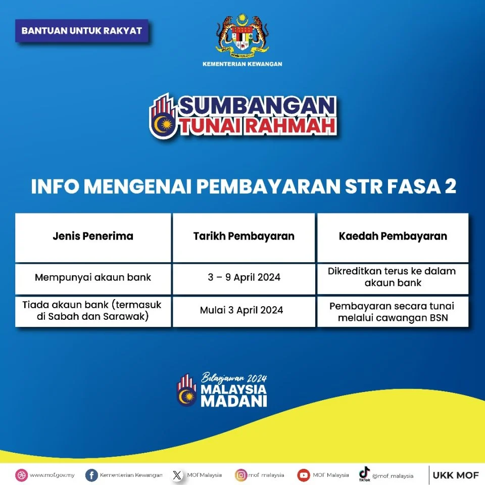 Berita yang pastinya melegakan ramai rakyat Malaysia, pembayaran Sumbangan Tunai Rahmah (STR) Fasa 2 yang sebelum ini dijadualkan pada April kini diawalkan bermula esok secara berperingkat.